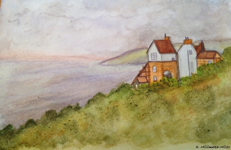 One cold Friday afternoon, Deb Miles and I took on one of the landscape challenges in the book. We learned a lot from this challenge – how to build wet-on-wet skies, that masking tape is no substitute for masking fluid, and that there is a point when the paper is no longer your friend!