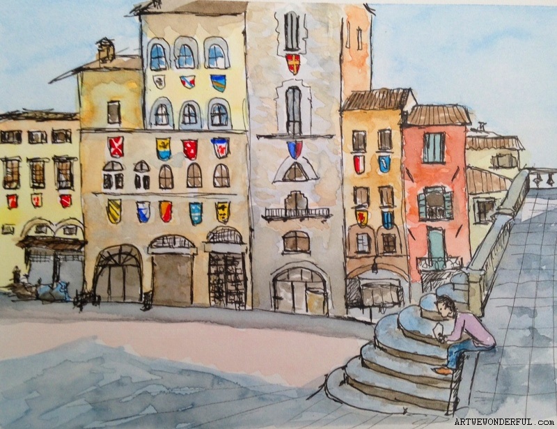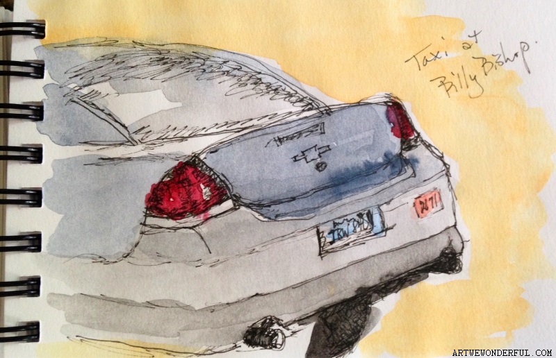 I draw slowly. I paint slowly. I will fall terribly behind on my trip if I spend a lot of time on each sketch. So I’ve been trying to speed up, be more loose – very hard for me. I do take a photograph of the subject I am drawing, usually to do the watercolour later. But I don’t always want to depend upon this method. I want to capture the moment and BE in that moment.