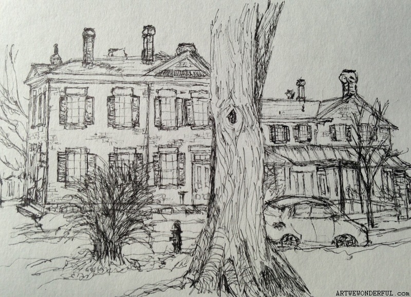 I’ve been preparing for this trip by doing pen drawings out in my neighbourhood – often, freezing on park benches. I’ve been doing pen and watercolour sketches from photos of past trips. I’ve also been getting inspiration for page layouts from the incredible book, “An Illustrated Journey: Inspiration From The Private Art Journals of Traveling Artists, Illustrators and Designers” by Danny Gregory.
