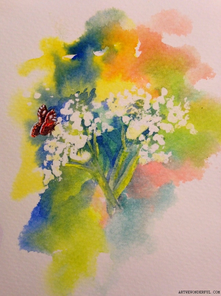 Supplies used: Da Vinci Artist Watercolours, Winsor & Newton Masking Fluid (off white), Arches 140lb Watercolour Paper