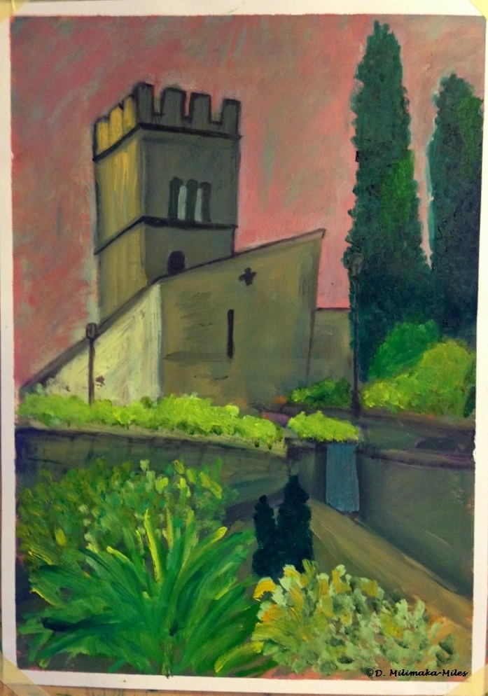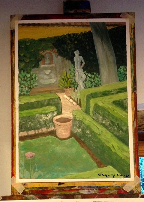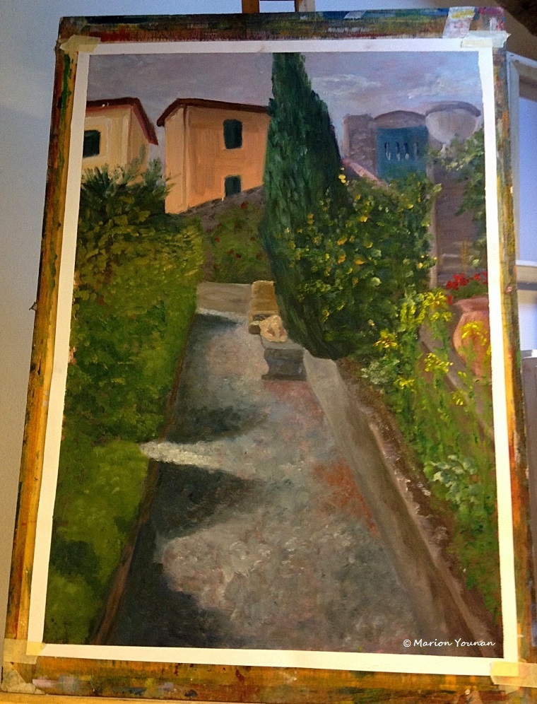 Our next project was a plein air oil painting, capturing the surroundings from a fabulous private garden in Barga.