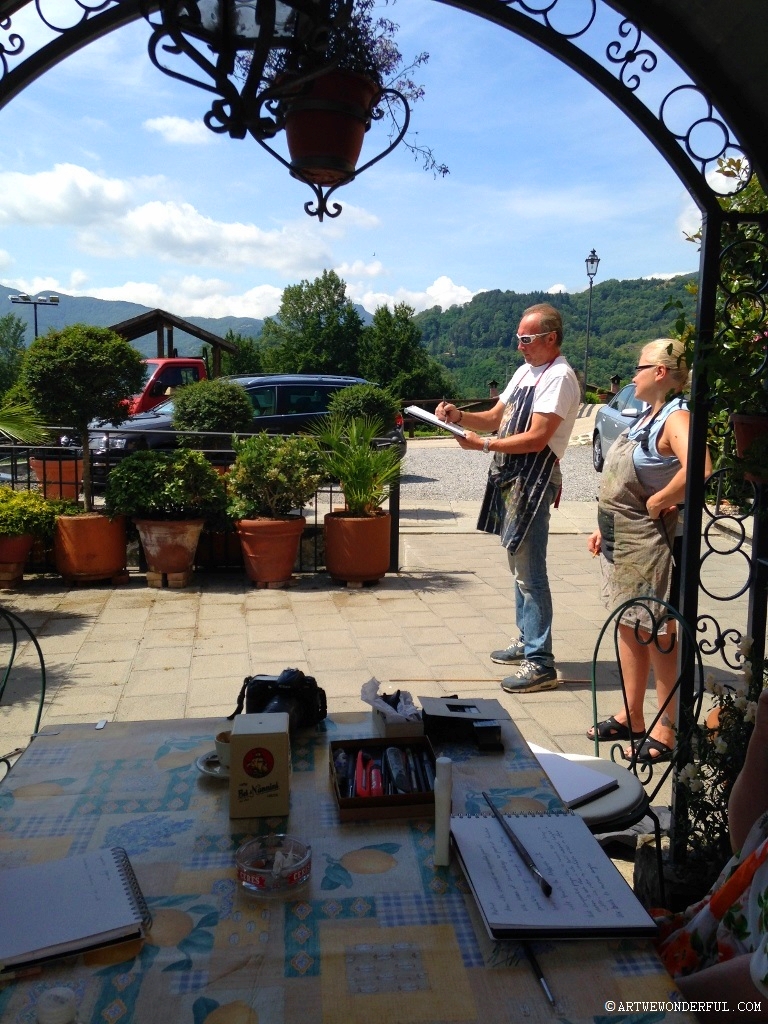 Before I begin the art exhibition from the second half of our week at Art Toscana, I want to share a bit about the “making friends” aspect of this experience – seeing my colleagues in the photo above has reminded me.