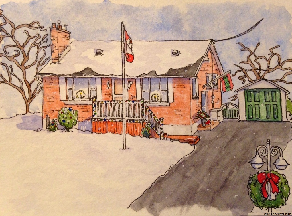 Before I completely forget about this past holiday season and deal with my January resolutions, I wanted to post a few pen/ink/watercolour pieces I created for family members.