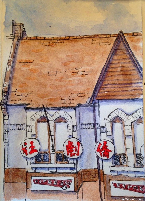 At the last sketch gathering, we went to the Art Gallery of Ontario (AGO), and I’ve always wanted to draw the row of buildings (more specifically their unique top floors and roof-lines) on Dundas Street from the 2nd floor Galleria Italia window. It will certainly take more than one visit to sketch them all. So I started with the first 3 buildings, working west to east. I’ve drawn them in a Moleskine Japanese Pocket Album, with its sequential, accordion-like pages. Painted one of the sketches on-site and the rest at home later. Still figuring out how to use watercolour on this paper because it really isn’t meant for it, getting soaked quickly and not blending easily.