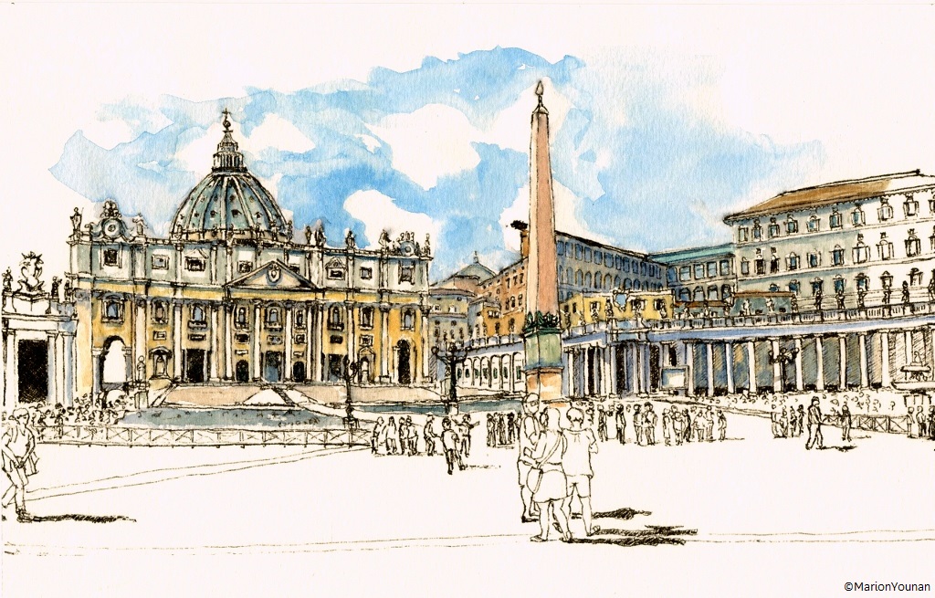 From my Sketchbook Project, here are the Rome drawings – all of them focused on the Vatican.