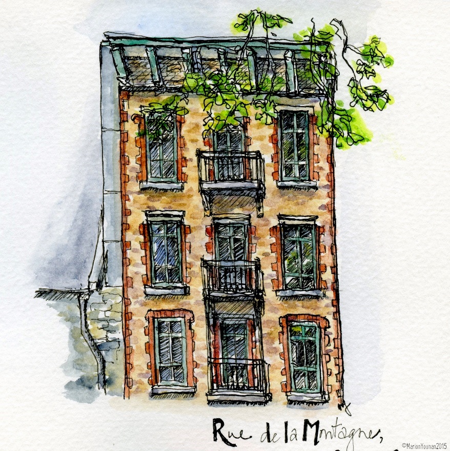While waiting for our car to come from the parking garage at our hotel in Québec City, I was compelled to draw this iron gate and some of the courtyard behind it. Turned out to be of my favourite sketches of the trip.