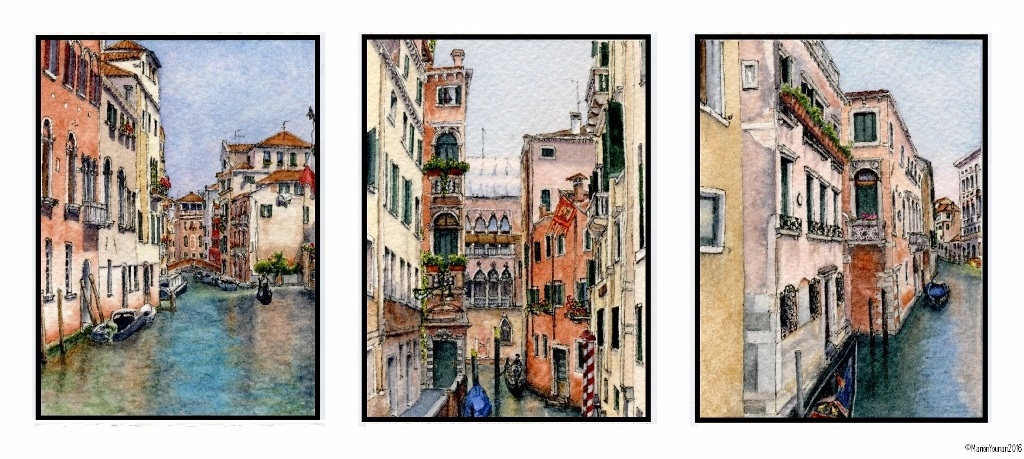 I have one more Venice piece to do, but I’m done with canals for now. For those who like 3’s, here are the 3 canals together: