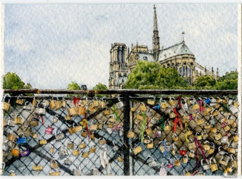 Capturing a moment in history from a 2011 family photo, the locks on the Pont de l’Archevêché near Notre Dame in Mini #85: