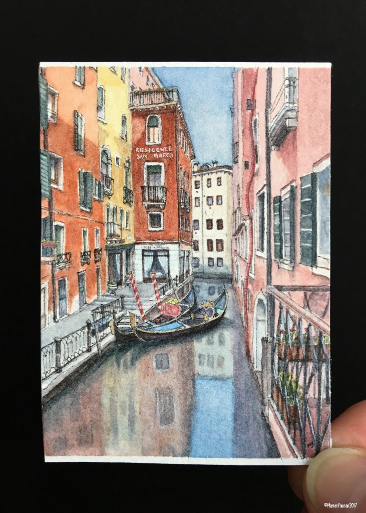 Painted from a 2017 family photo, one of those small rio’s where the singing gondoliers were obviously on their break!