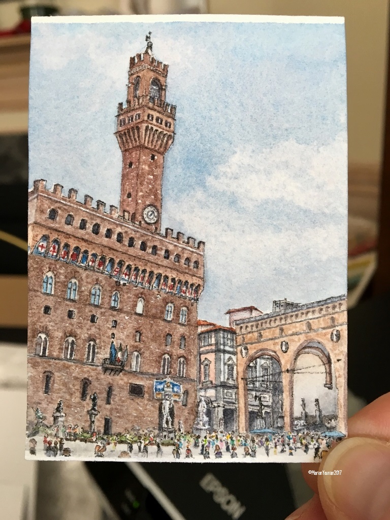 Another sign – I painted 2 more miniature pieces from my travels in Tuscany… like I haven’t painted enough Tuscany already. I needed that fix! As I paint I could submerge myself in all things Tuscan. Like a: