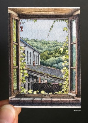 I’ve captured that window in my latest miniature, “Out A Tuscan Window”. When my husband saw the piece, he asked if we could keep it for ourselves as he also spent a good deal of time at that window! Something that simple can evoke such strong but peace-filled emotions!