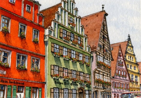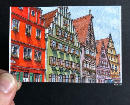 And Dinkelsbühl Germany is the subject of my first 2019 miniature ink and watercolour, inspired from a 34 year-old travel photo and story.