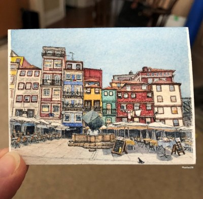 Like in my newest miniature, “Praça da Ribeira, Porto”, where the definition of “mash-up” is on full display!