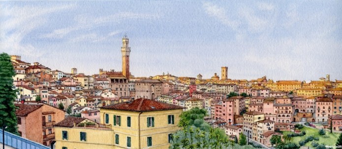 I’ve visited Siena a number of times but this is the first time I’ve painted it. I couldn’t resist capturing this view of the city just as the sun was going down on the last day of 2018.