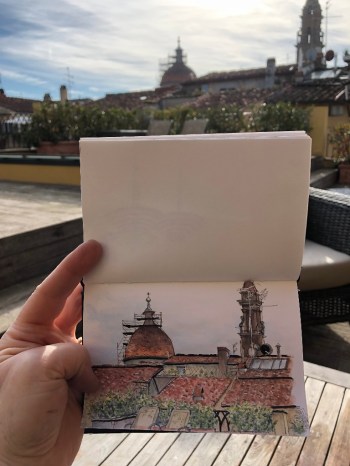 Inside my Sketchbook – over the rooftops to Santo Spirito from the terrace