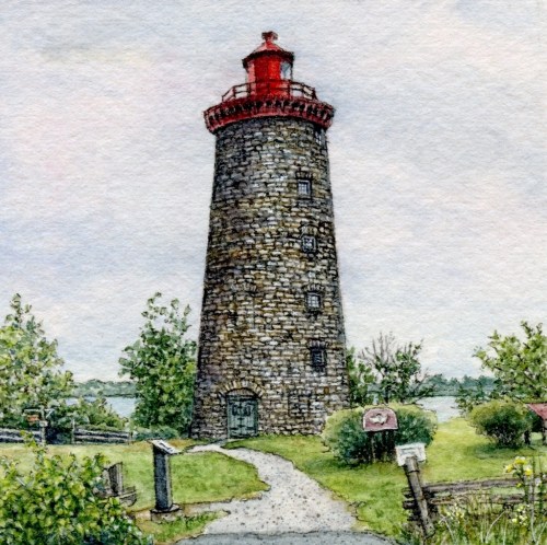 After my visit to Windmill Point near Prescott, I knew immediately what my first painting would be – the old stone lighthouse that sits in a lovely little park above the St. Lawrence River.