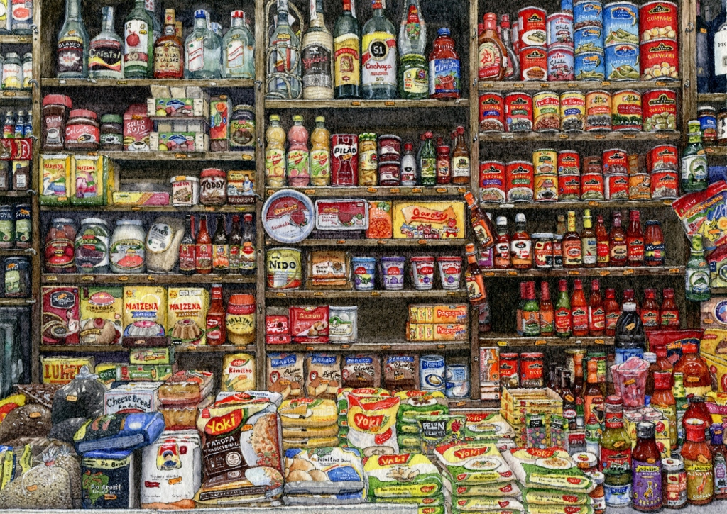 After 16 pandemic-months of zooming in and out of local stores with zero lingering in the condiments aisle, I spent that lingering time with this painting instead. And even though I couldn’t touch these jars and bottles, I did have to look up many of them on the Internet to clarify details and in turn, learned a lot about these products. Nowhere near as good as being there in person, but it was a rewarding experience, taking my time to satiate my condiments curiosity!