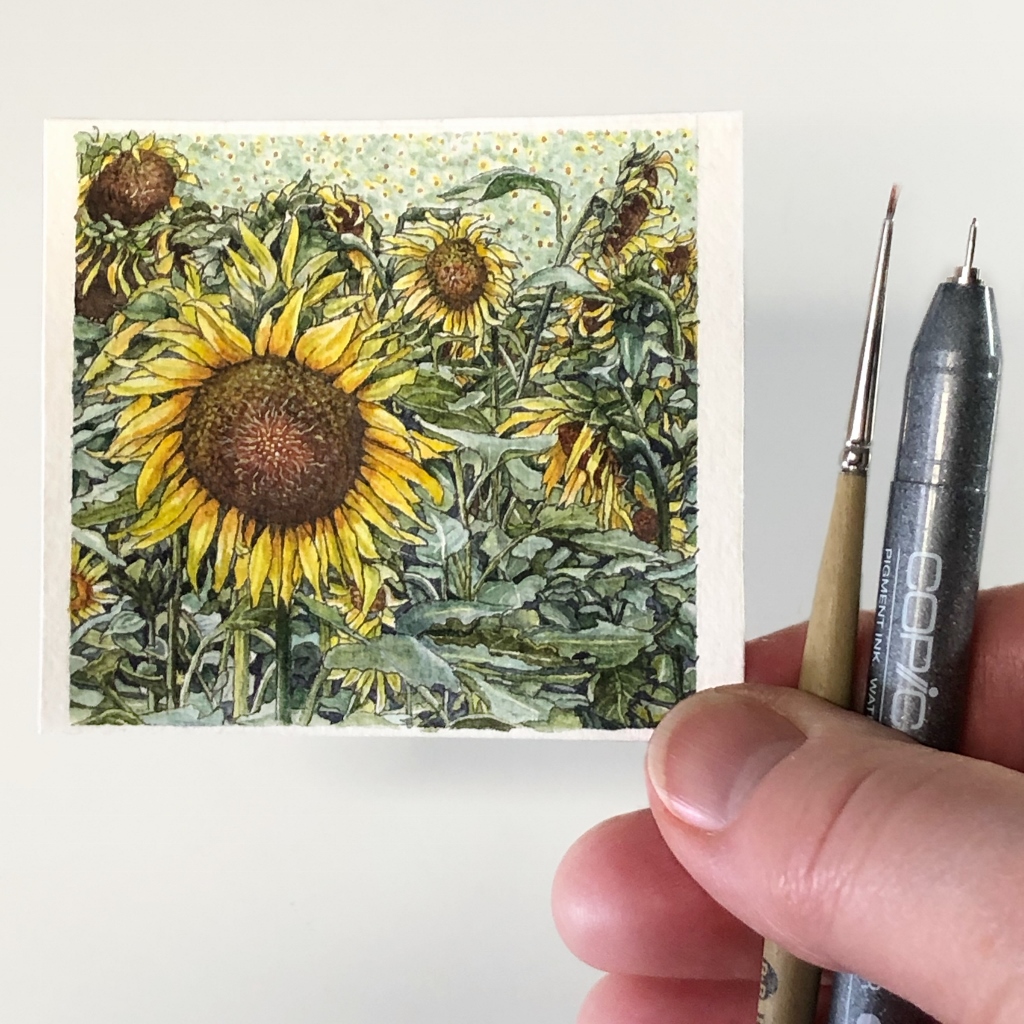 “Summer In Italy”; 2.5″ x 2.5″ miniature ink and watercolour painting