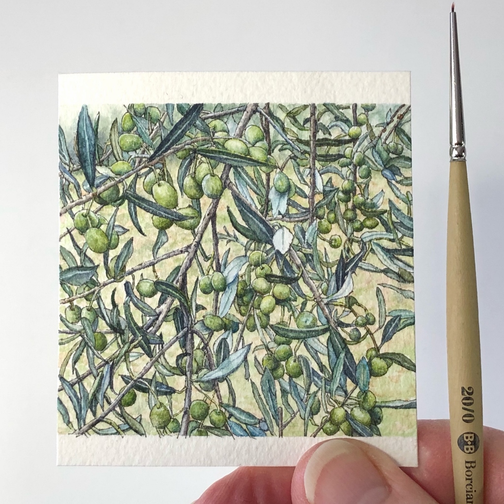 “Assisi Olive Tree” – 2.5” x 2.5” ink and watercolour; available now in shop here... along with a few other naturally-inspired minis that I just discovered make a great little home gallery wall.