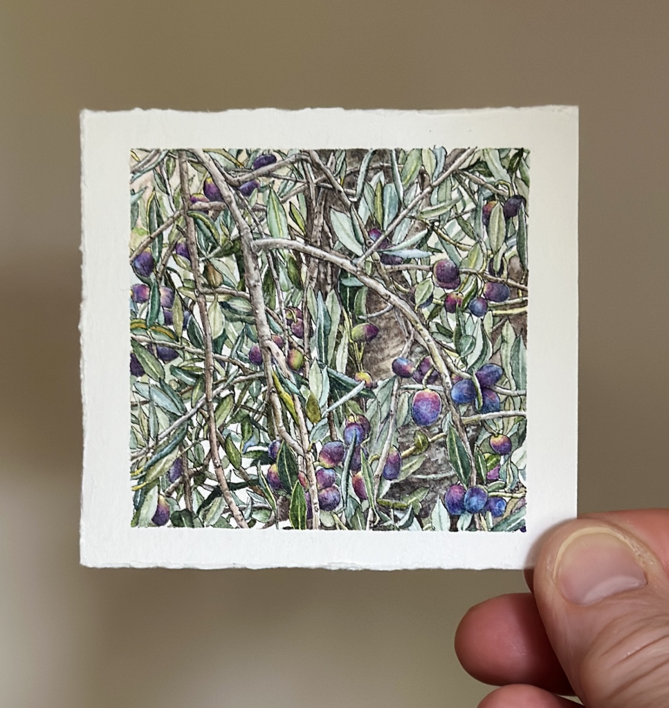 Olive Harvest Time In Umbria – 2.5″ x 2.5″ (sold)