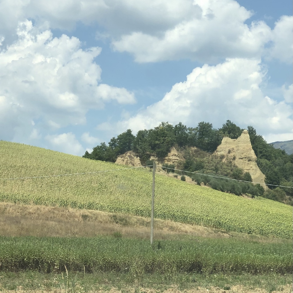 Next stop was to see the Balze of the Valdarno, a series of rock formations that rise out of the landscape in odd formations. Leonardo Da Vinci was so enamoured with them that they appear in the background of the Mona Lisa. So we had to go see what they were all about! They are definitely an unusual sight, peaking out of forested hills, left behind over a hundred thousand years ago after a large lake dried up. So I guess they deserve to be highlighted in the world’s greatest painting!