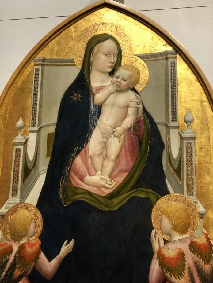 We drove from our rental home in Chianti over to the Tuscan town of Reggello to the Museo Masaccio – a small art museum with a fantastic collection from Renaissance artists like Masolino, di Tito, Ghirlandaio, Lippi and hometown boy, Masaccio. We were the first visitors of the day, and had the museum entirely to ourselves. Being able to get so close to these pieces without setting off alarms was such a treat. Like most artists, I like to examine brush strokes and line work up close, trying to figure out techniques. (In my pre-artist days, I used to zoom through museums, but no longer!) It was thrilling to stand in front of these masterpieces and not feel I had to move so others could see.
