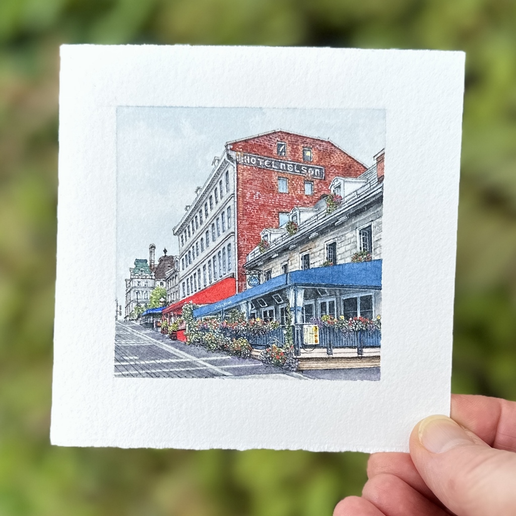 So it comes as no surprise that I’ve painted a number of my favourite parks and piazzas. Last year, I painted miniatures of two of my favourite Canadian spots: Place Jacques-Cartier in Montreal, and Canoe Landing Park in Toronto.