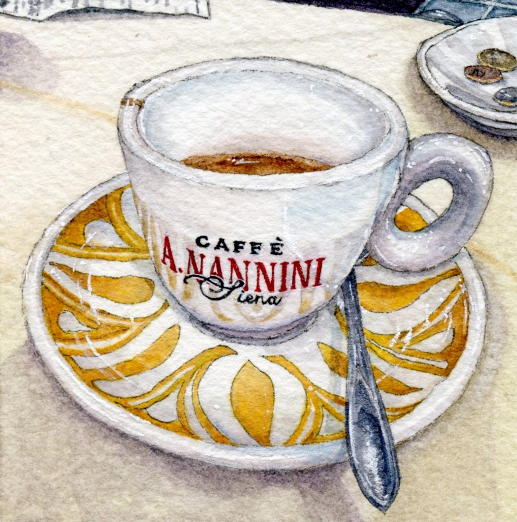 All 6 of these hot cups of goodness were memorable, not only in warming us up in the cold, but being part of several lovely days spent in Tuscany before Christmas last year. It was a delight to relive them while painting and writing about these little delicious works!!