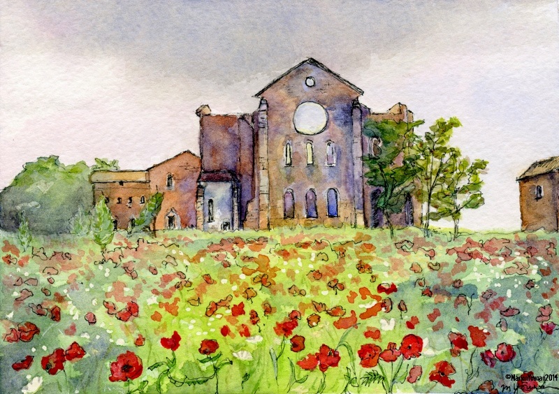 ‘Tuscan Abbey and Poppies (2014)’